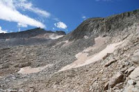 Our way became steeper and steeper until we reached the foot of a gap (or col) in El Diente’s east ridge line. No cairns. The guide book told us to traverse west toward the summit, but how far?